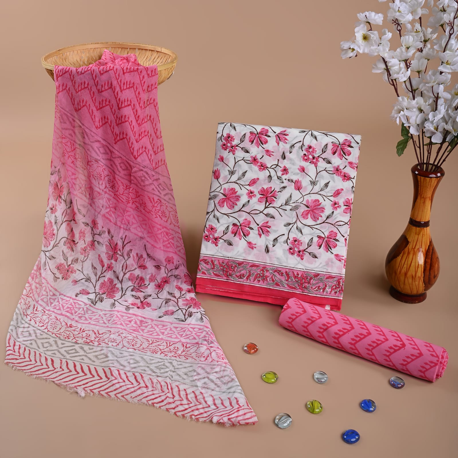 1028-Women’s Cotton Printed 2-Piece Set – Long Sleeve Shirt & Printed Trouser